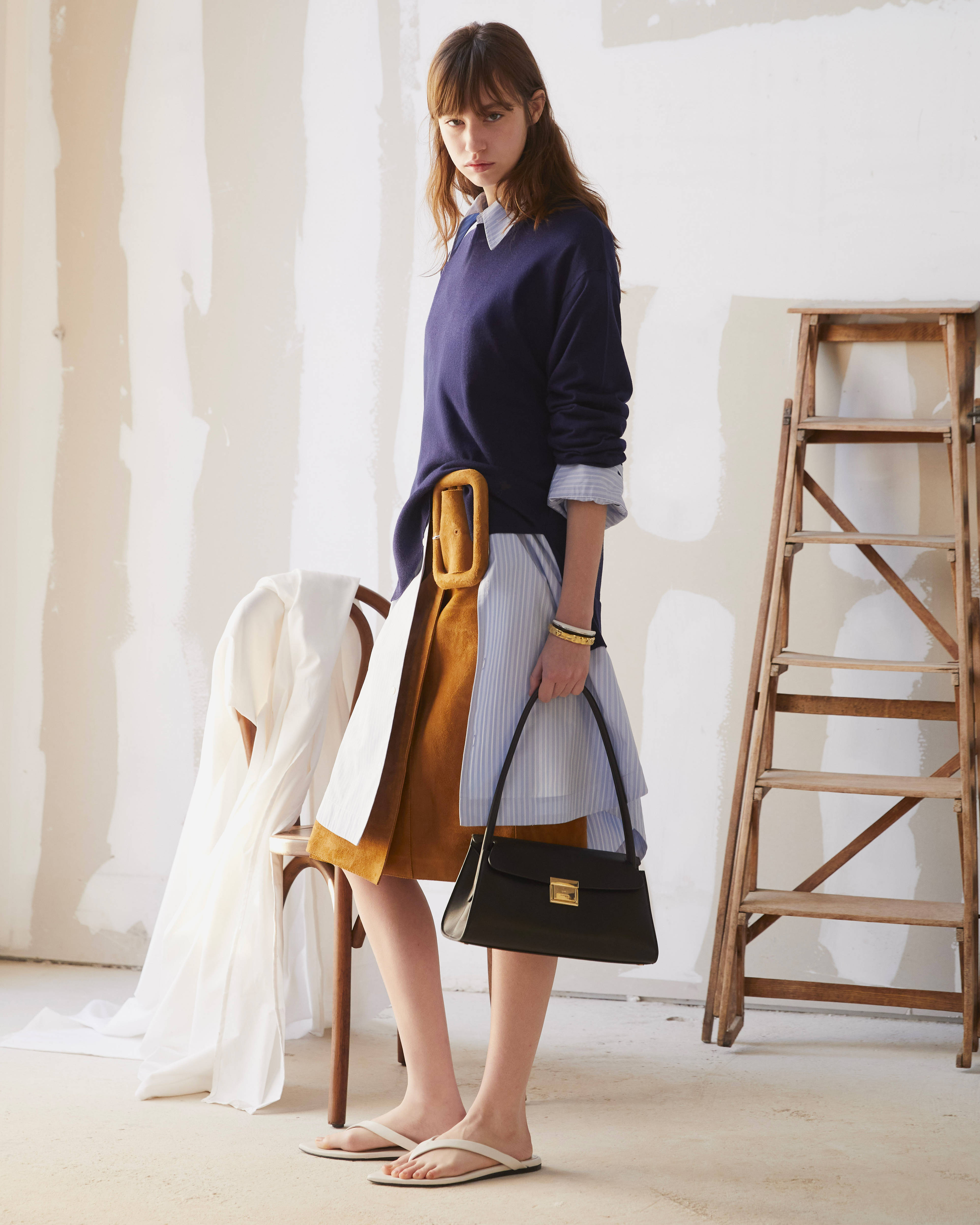 本季设计重点聚焦于风格清新的条纹叠层衬衫,针织或飘逸的蕾丝连衣裙,以及修身或硬朗的利落剪裁夹克,这些亮点单品增添了系列整体的松弛感。