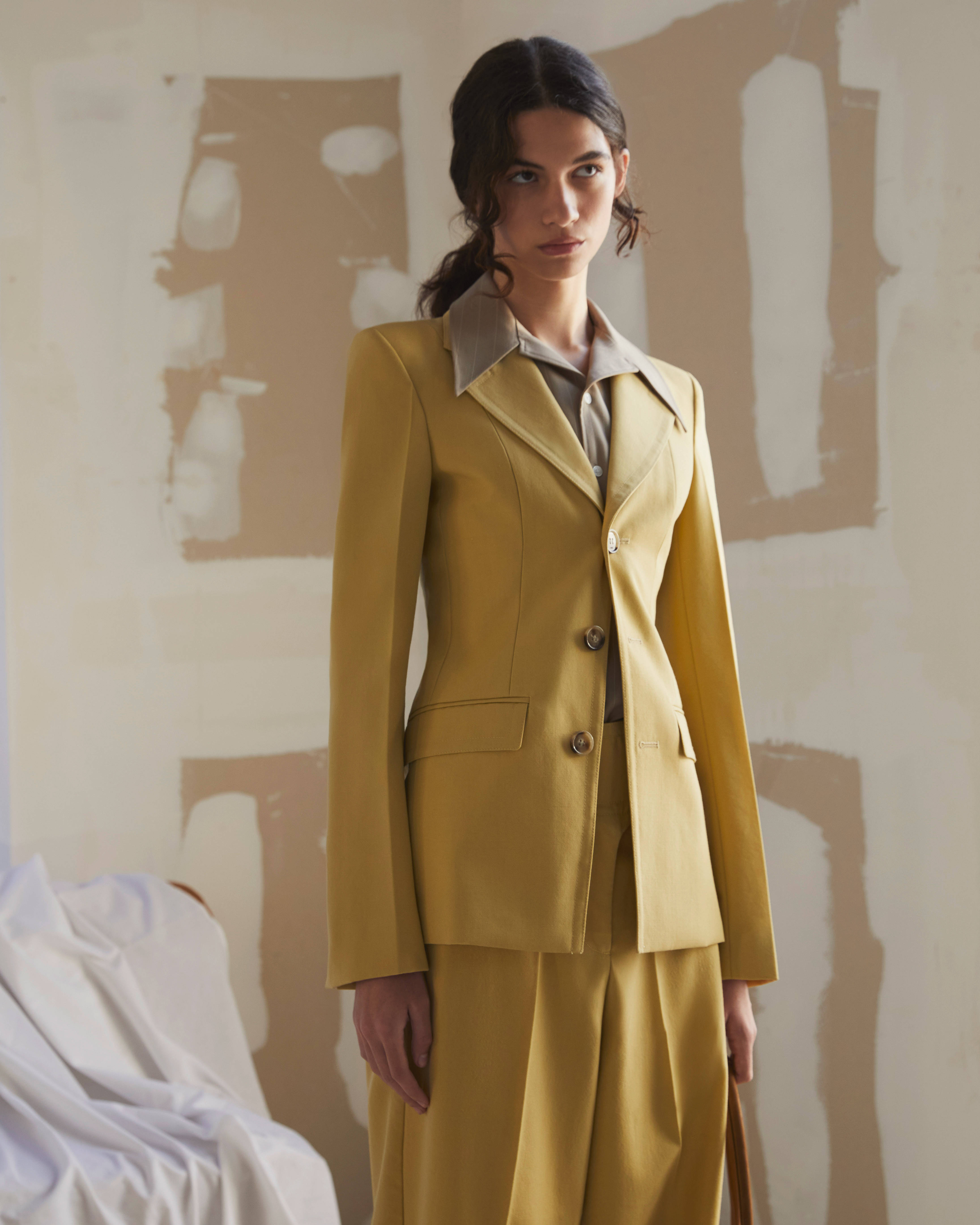 在面料方面,该系列选用欧根纱、羊毛帆布、华达呢、蕾丝、双层棉、粘纤针织、羊毛与真丝等多元材质,并融入棉、麻、皮革及原色丹宁,尽显丰富质感。