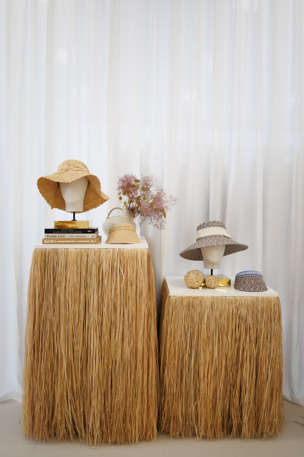 伴随此次亮相,Helen Kaminski 特别打造了其在中国内地的首个品牌展示空间。空间延续品牌全球统一的设计理念,以标志性的天然拉菲草为核心元素。由拉菲草编织而成的艺术装置点缀于墙面与陈列之间,自然的纹理与柔和的光线相映,营造出沉浸式的情境氛围,引领来访者邂逅一场品牌源于自然的美学之旅。